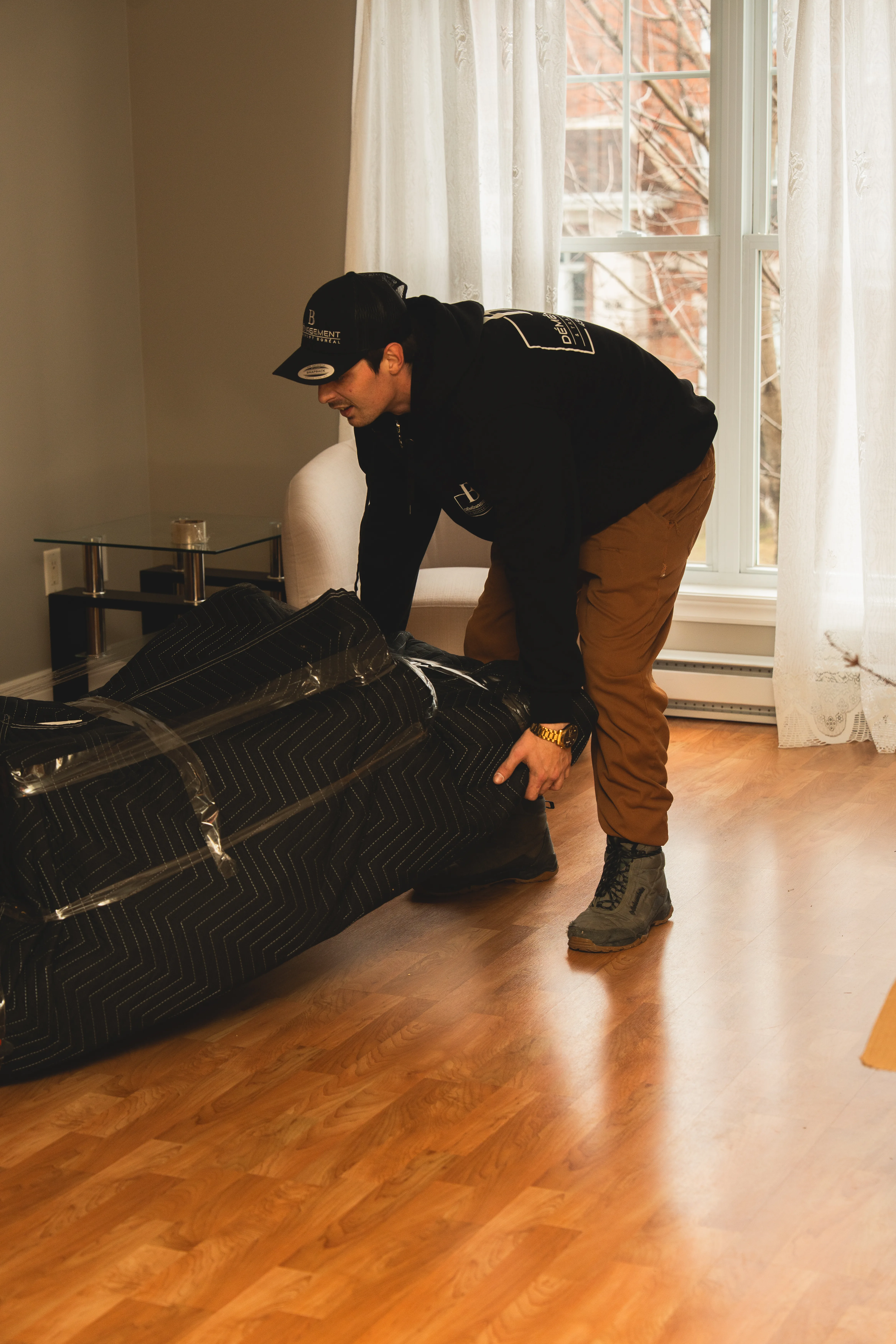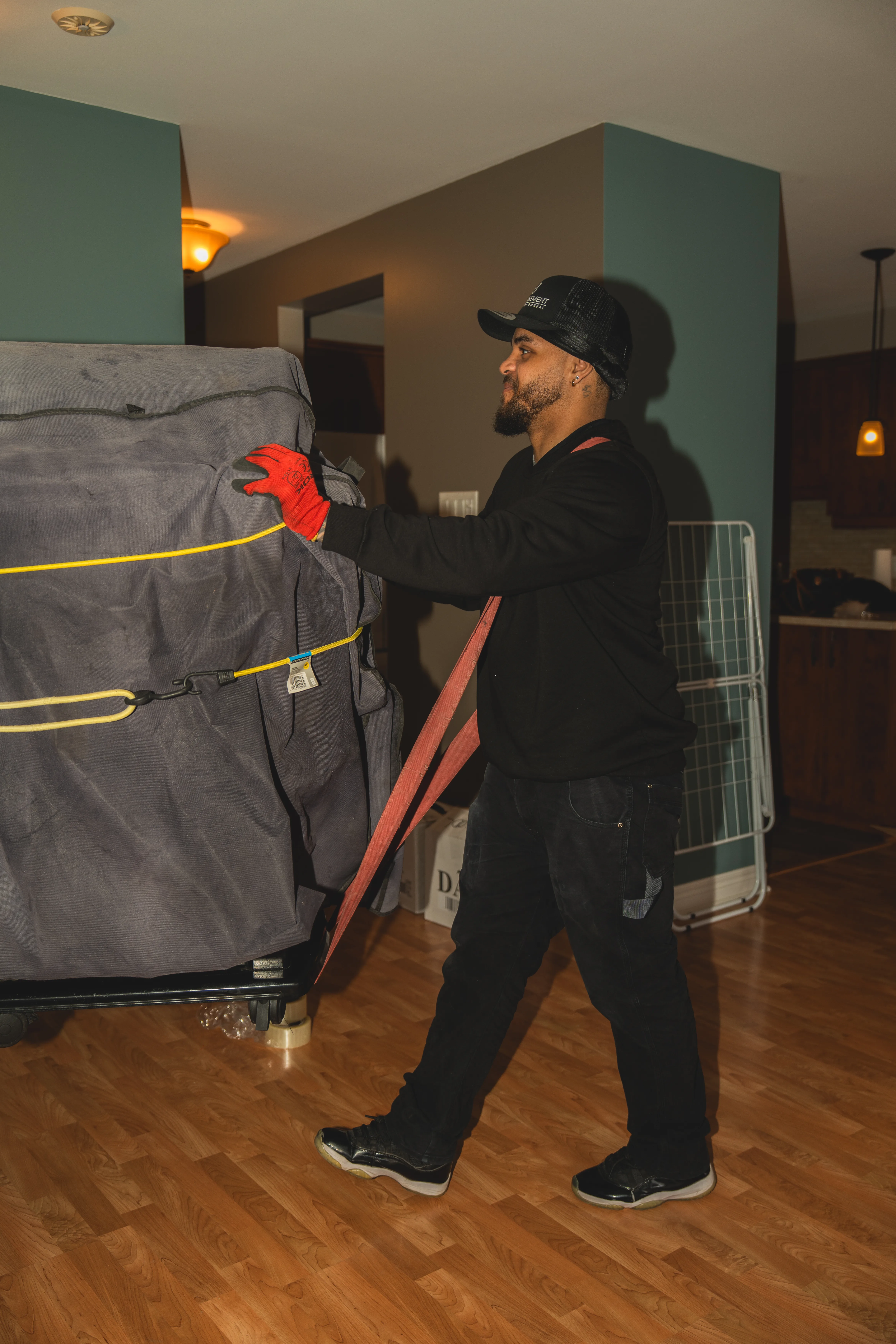 Nous protégeons chaque meuble avec des couvertures et sangles de transport, puis nous optimisons le chargement pour éviter tout mouvement pendant le trajet.